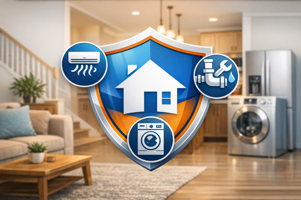 Home warranty coverage for HVAC, plumbing, appliances, and home systems to reduce repair costs for homeowners.